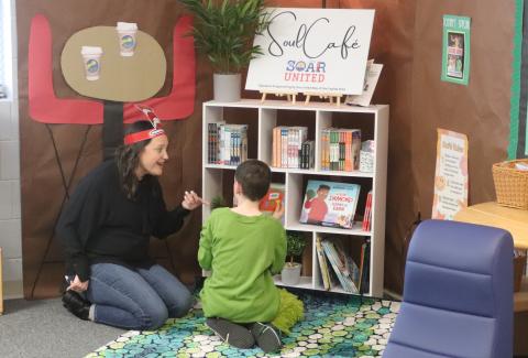 The Soul Café creates a calm, welcoming environment where youth can enjoy a positive reading experience within a United Way of the Capital Area (UWCA) partner site. Designed to reflect a 'coffee house' atmosphere, the Café offers students a choice of 3–5 book titles per grade level, with 2–3 copies of each title available. This allows small groups of peers to read and engage with the same book, encouraging both independent reading and group interaction.